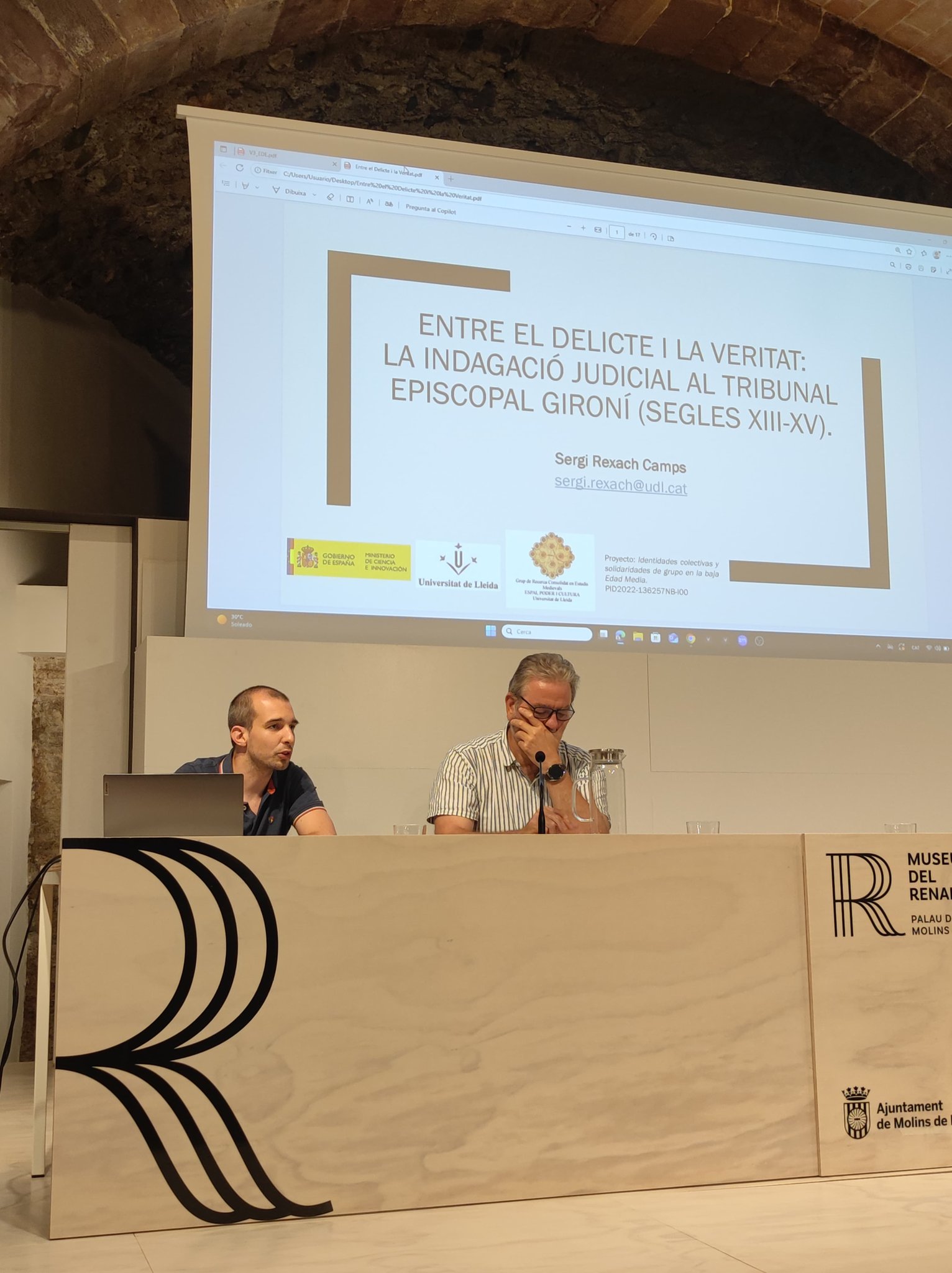 Sergi Rexach, attended the "II Escola Doctoral d'Estiu sobre la Corona d'Aragó" with the paper "Entre el delicte i la veritat. La indagació judicial al tribunal episcopal gironí (segles XIII-XV)". This meeting was organized by Associació d'Historiadors de la Corona d'Aragó-HISCOAR and Càtedra UB d'Estudis del Renaixement Molins de Rei.